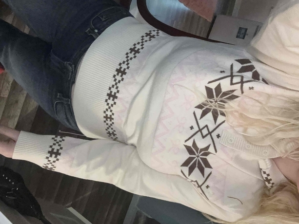 The viscose blend sweaters are always good. This one is super soft and stretchy. I’m glad I got a medium because a large would’ve been too lumpy.