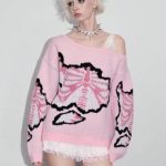 ROMWE Avant Women’s Y2K Oblique Collar Lace Decor 2 In 1 Skeleton Jacquard Knit Sweater
