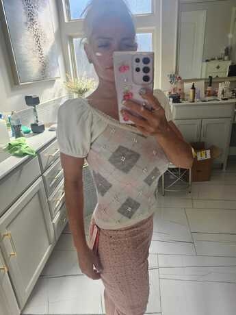 3 reviews for ROMWE Avant Y2K Aesthetic Diamond Pattern Cute Pearl Knit Tight Sweater For Women