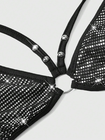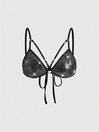 ROMWE Avant Y2K Sexy Rhinestone Studded Wireless Crop Top For Women