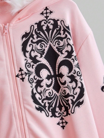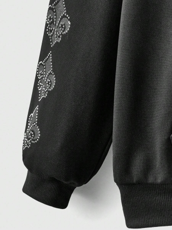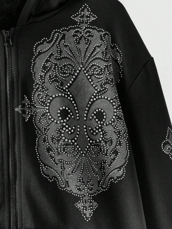 ROMWE Fairycore Hooded Sweatshirt With Rhinestone Detailing, Drop Shoulder, Zipper, And Raw Edge Hem, School,Long Sleeve Tops Graduation,Back To School Outfits,Graduation,Teacher Outfits For Women,Back To School