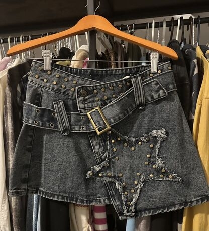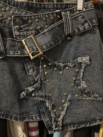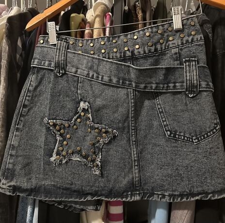 1 review for ROMWE Grunge Punk Women’s Punk Emo Dark A-Line Cross Studded Denim Mini Skirt