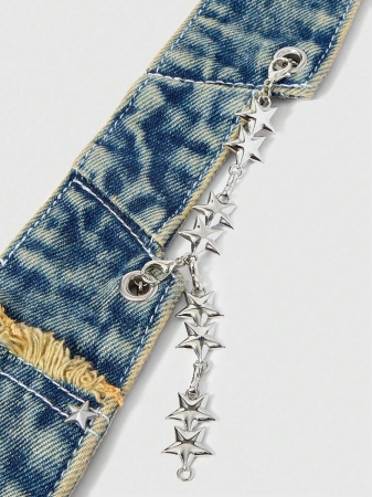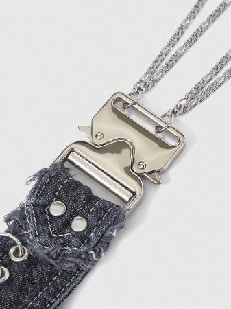 ROMWE Grunge Punk Y2K Punk Metal Ring Accessories, Multiple Eye & Pocket Design, Distressed Edge Necktie For Women, Personalized Cool Unique Decorative Ornaments