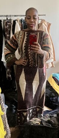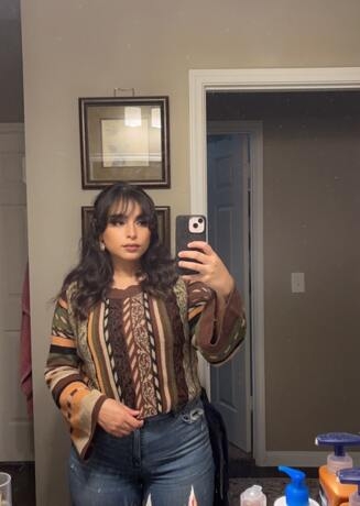 Literally my favorite sweater ever, wore it for Friendsgiving and I was so comfortable. Styled it with my bell bottoms and wedges 🫶🏼