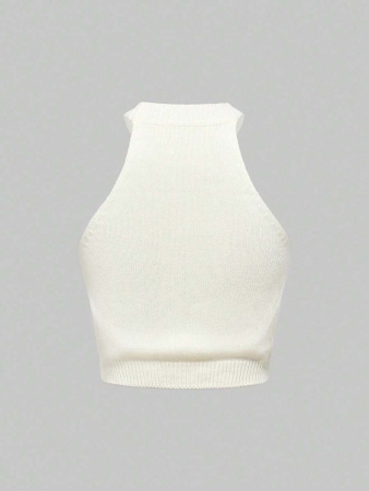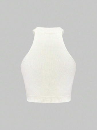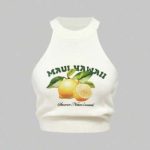 ROMWE Summer American Sexy Girl Knitted Spaghetti Strap Lemon Print Slim-Fit Sleeveless Cropped Tank Top Fall Winter