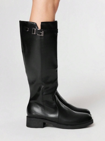 3 reviews for ROMWE Women’s Dark Rock Punk Goth Boots, Flat Leather Buckle Knee-High Boots, Soft Sole Tall Boots, Motorcycle Boots