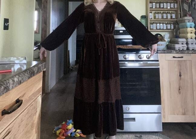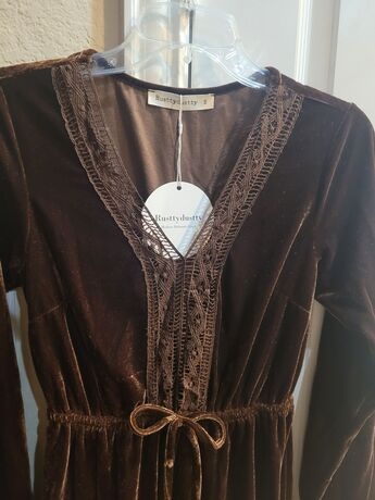 3 reviews for Rusttydustty Boho Chocolate Brown Velvet Warm V-Neck Long Sleeve Elegant Lady’s Dress