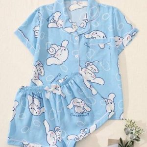 Be the first to review “Sanrio Sanrio Authorized 2Pcs/Set Women’s Cinnamoroll Printed Lapel Collar Button Short Sleeve Single-Breasted Top And Bow Shorts Pajama Set, Summer Pajama Set, Comfortable For Home Use, Two Pieces Set, Cool Light Blue”