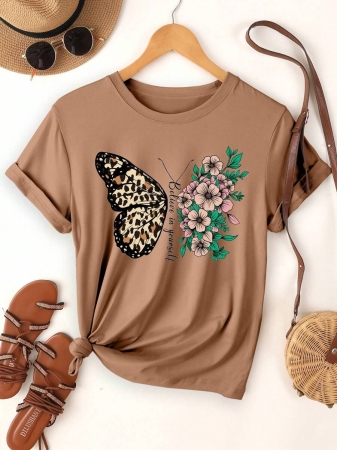 SHEIN ChicEase Women’s Casual Simple Letter Printed Oversized T-Shirt Graphic Tees Women Tops
