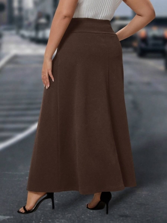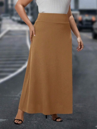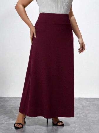 SHEIN Clasi Plus Size Rose Print Color Block Skirt, Suitable For Autumn And Winter