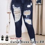 1 review for SHEIN CURVE+ Plus Size Fashion Denim Effect Print Slim Fit Pants, Suitable For Autumn/Winter