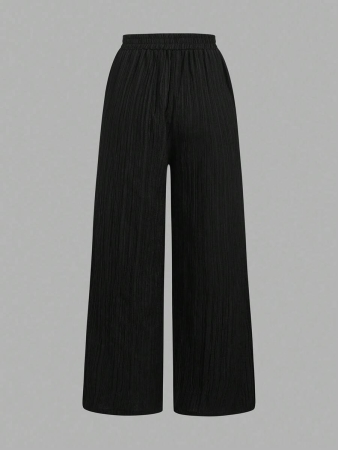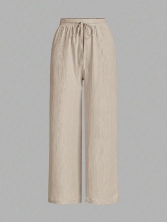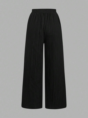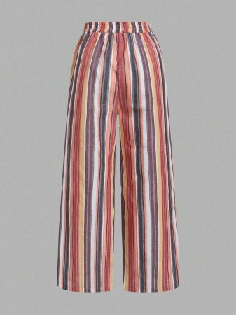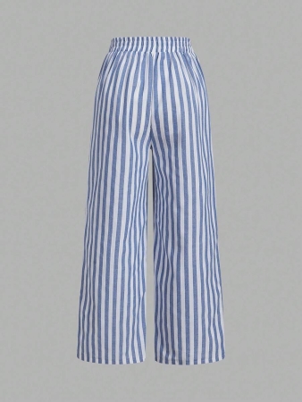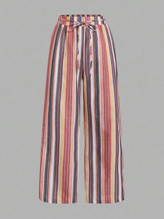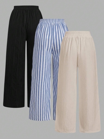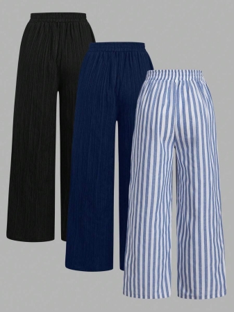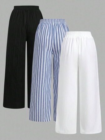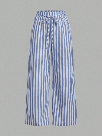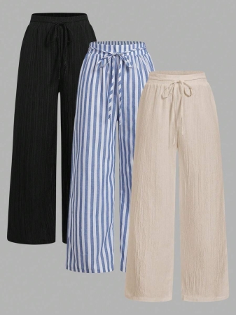 SHEIN Essnce 3pcs Set Black & White Striped Nautical Style Women Casual Waist Tie Pants With Pockets, Straight Leg, Suitable For Summer Vacation Fall Clothes Winter Clothes