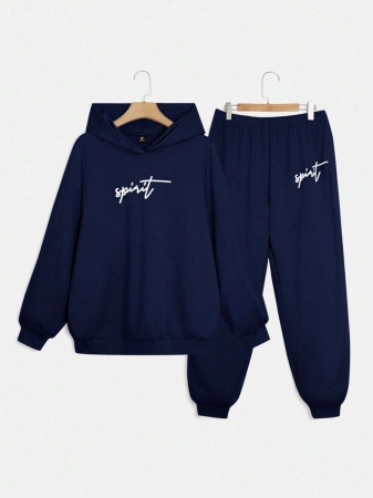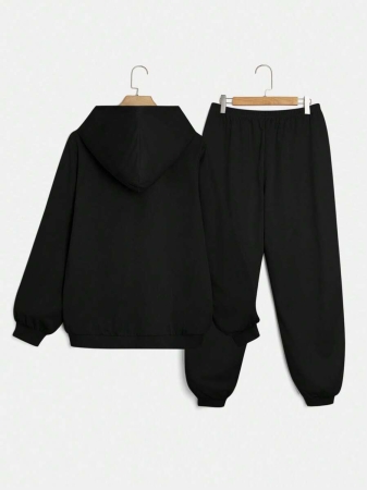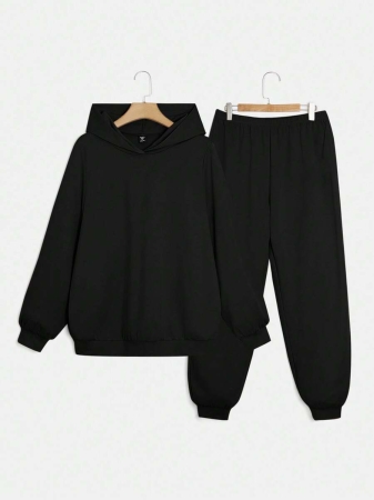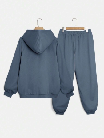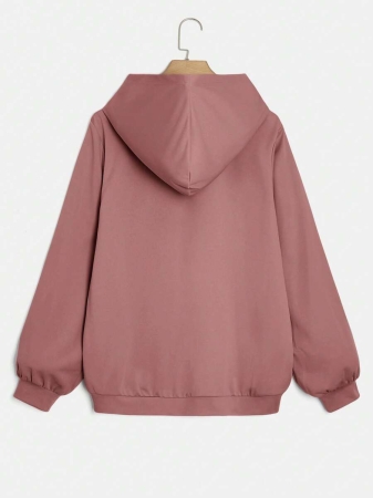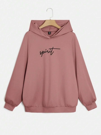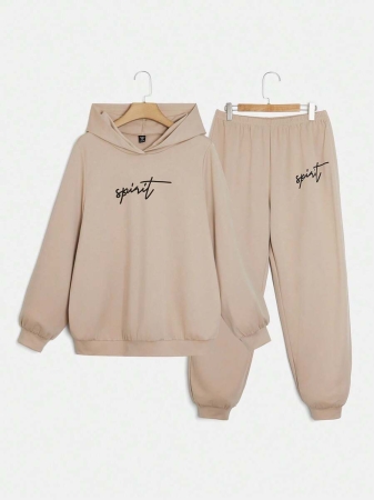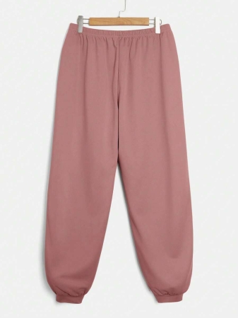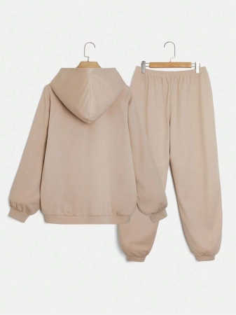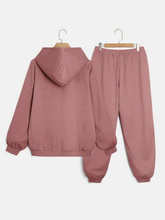 SHEIN EZwear 2pcs/Set Plus Size Women Casual Hooded Sweatshirt & Pants Set, Lotus Root Pink Hoodie And Sweatpants Set Comfy Set