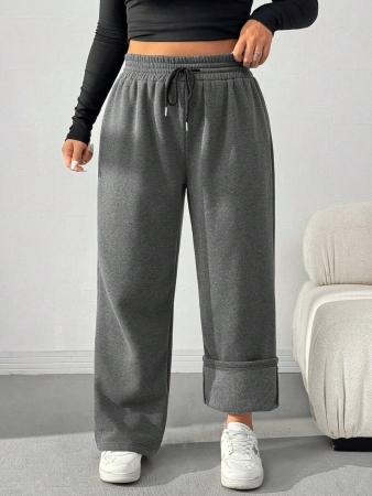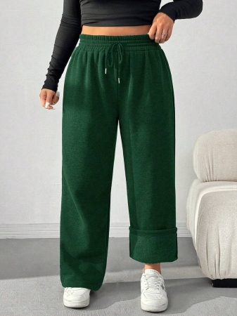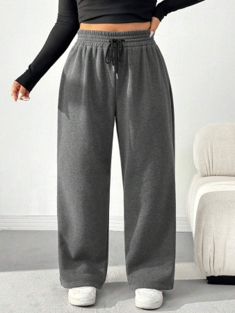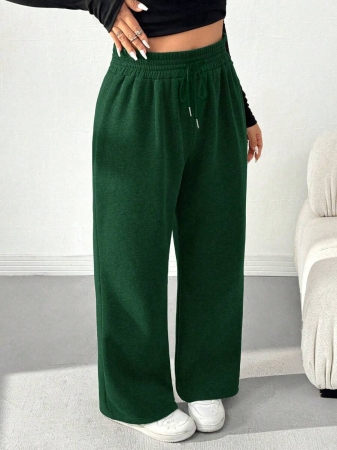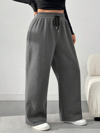 SHEIN EZwear Plus Size Women Drawstring Waist Wide Leg Loose High Waisted Casual Sweatpants Graduation,Back To School Outfits,Graduation,Teacher Outfits For Women,Back To School