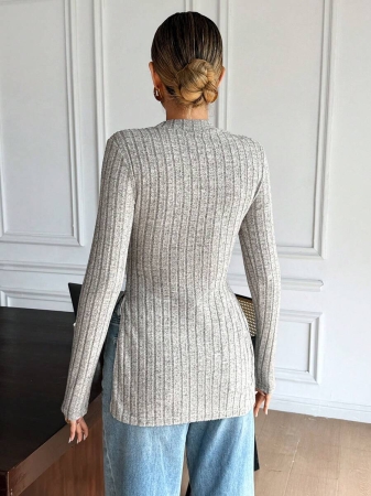 SHEIN Frenchy Split Hem Ribbed Knit Tee Winter Christmas Red