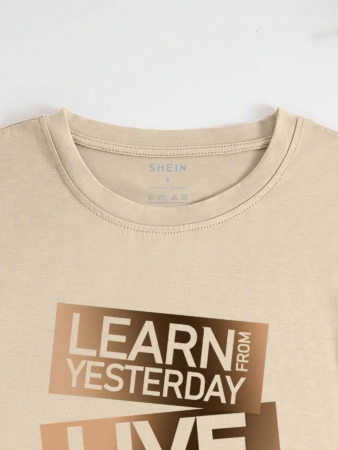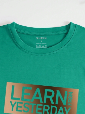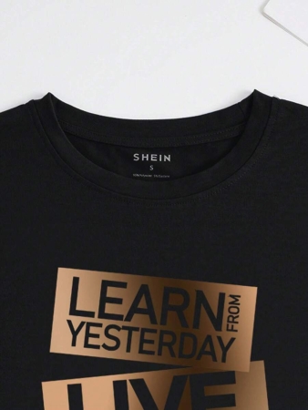 SHEIN Letter Printed Round Neck Short Sleeve T-Shirt LEARN FROM YESTERDAY LIVE FOR TODAY HOPE FOR TOMORROW Graphic Tees Women Tops