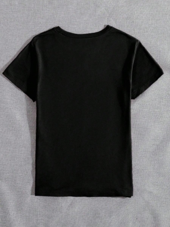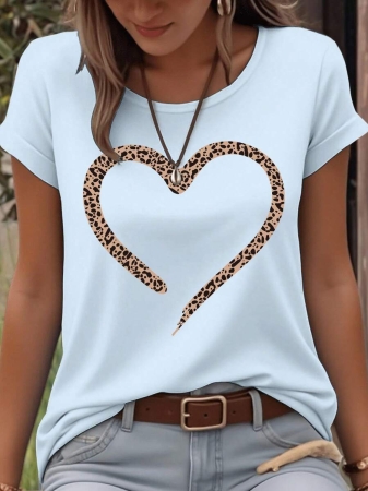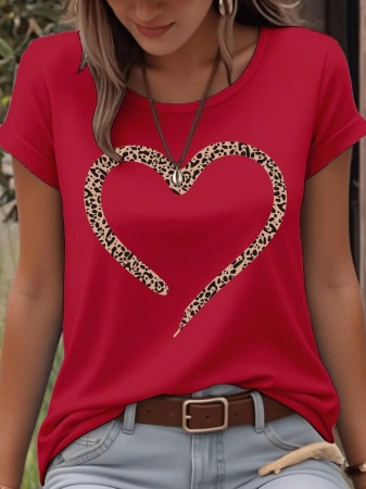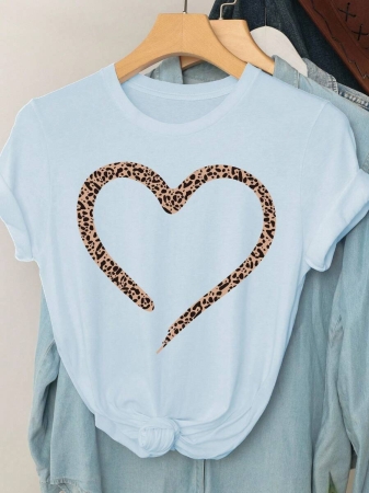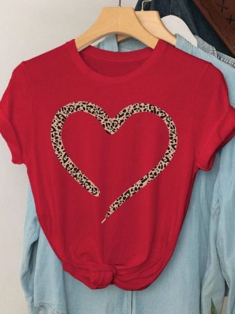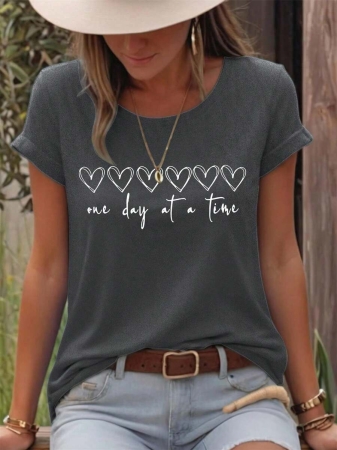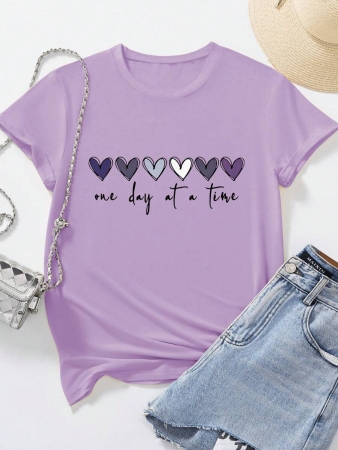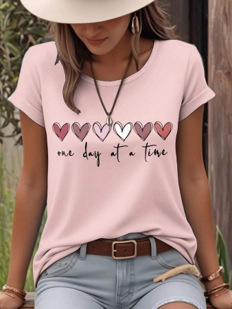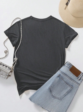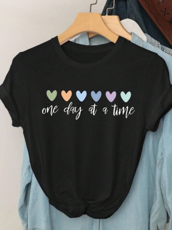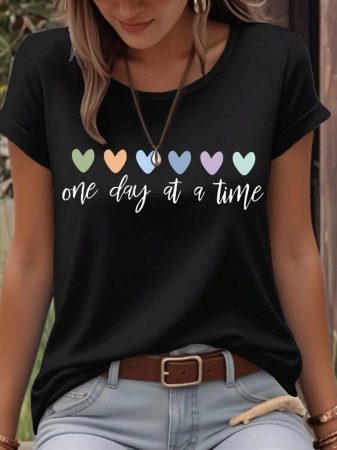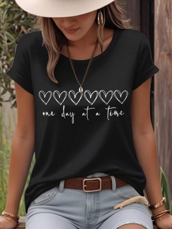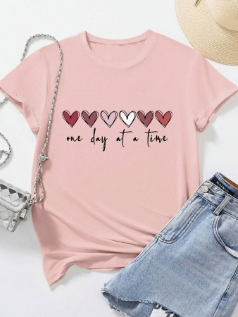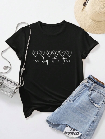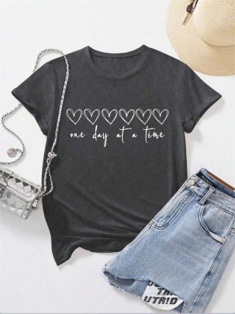 SHEIN LUNE Heart & Letter Slogan Round Neck Short Sleeve Women T-Shirt