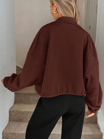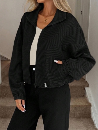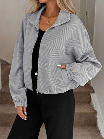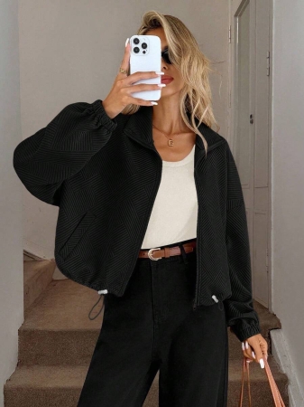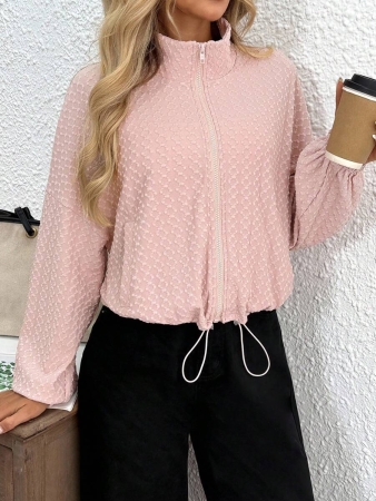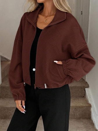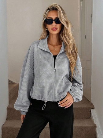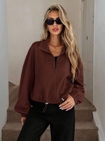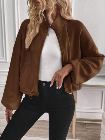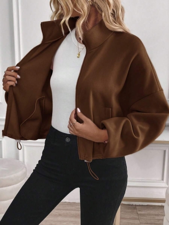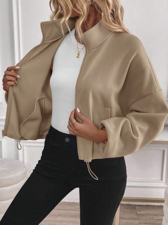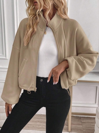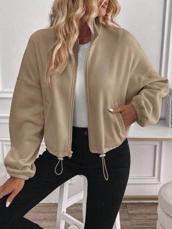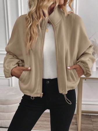 SHEIN LUNE Women’s Zip-Up Drawstring Long Sleeve Warm Fleece Fashionable Casual Stand Collar Hoodie Jacket Khaki Zip Up In Fall/Winter,Zip Up Hoodie Women