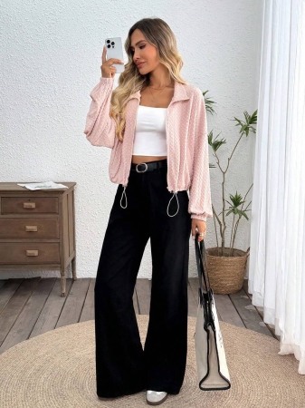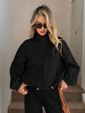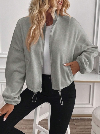 3 reviews for SHEIN LUNE Women’s Zip-Up Drawstring Long Sleeve Warm Fleece Fashionable Casual Stand Collar Hoodie Jacket Khaki Zip Up In Fall/Winter,Zip Up Hoodie Women