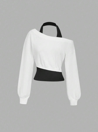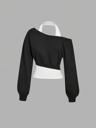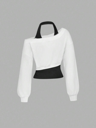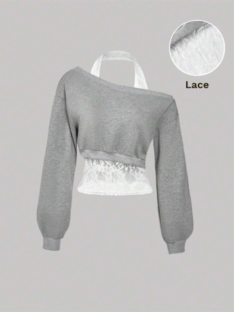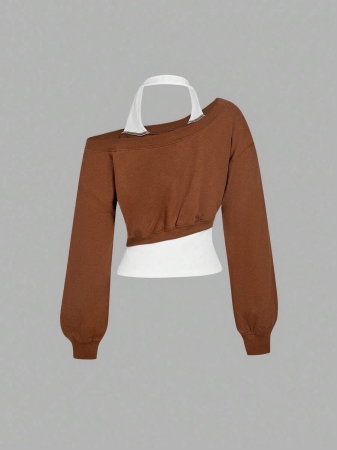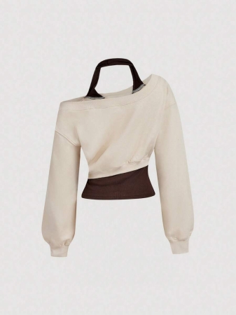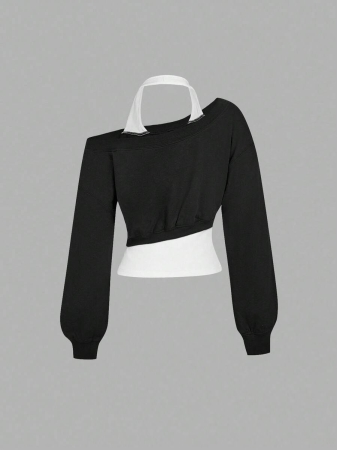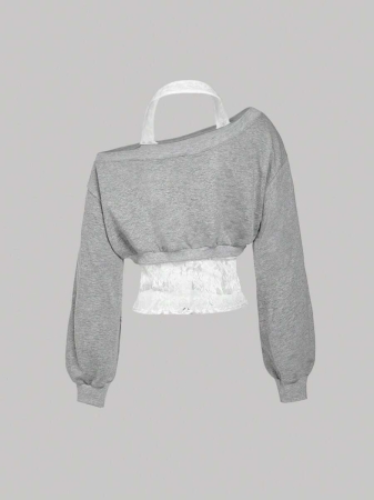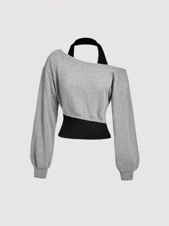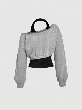 SHEIN MOD Women Asymmetrical Neck Grey 2 In 1 Sweatshirt In Fall/Winter