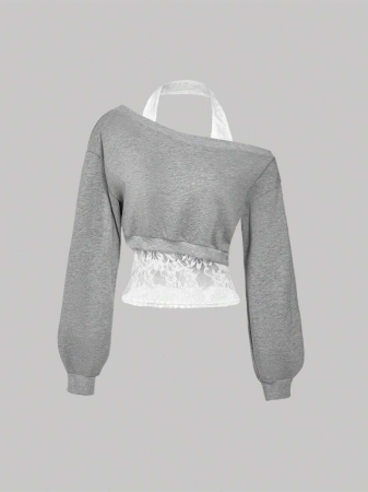 3 reviews for SHEIN MOD Women Asymmetrical Neck Grey 2 In 1 Sweatshirt In Fall/Winter