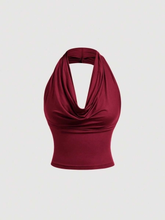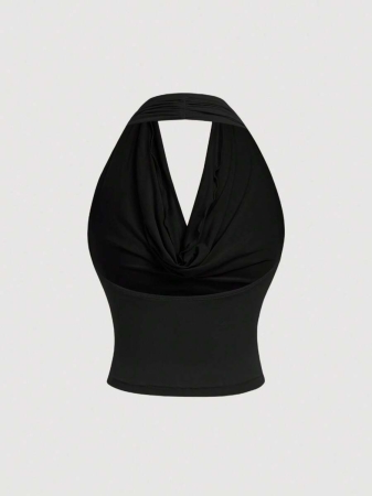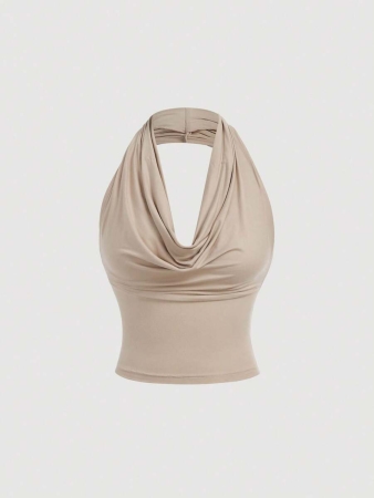 SHEIN MOD Women’s Elegant Solid Color Versatile Halter Neck Top, Summer