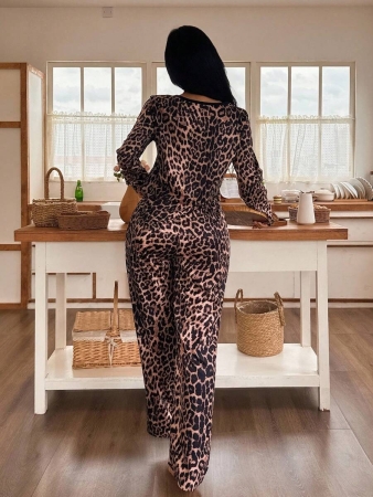 3 reviews for SHEIN Multicolor Leopard Print Regular Fit Long Sleeve Top & Pants Pajama Set, Lounge Set, Fall Clothes Cozy And Elegant Details