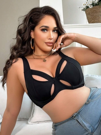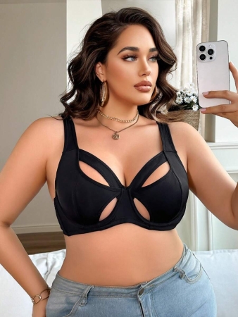 SHEIN Plus Size Hollow Patchwork Design Comfortable Wireless Thin Cup Lingerie