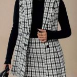 SHEIN Tall CURVE Plus Size Women Plaid Pattern Vest + A-Line Midi Skirt 2 Piece Set, Elegant For Daily Commute