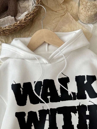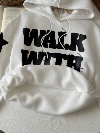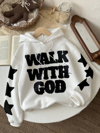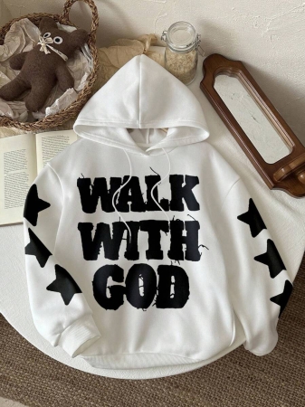 Slaydiva Casual Minimalist Printed Hooded Long Sleeve Loose Fit Thick Sweatshirt For Women, Suitable For Autumn/Winter, “Walk With God” Print,Fall