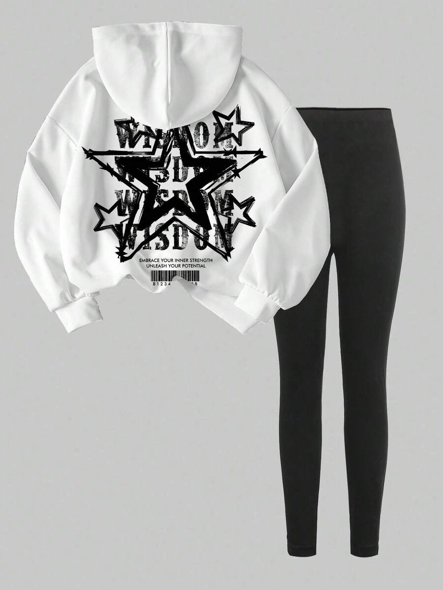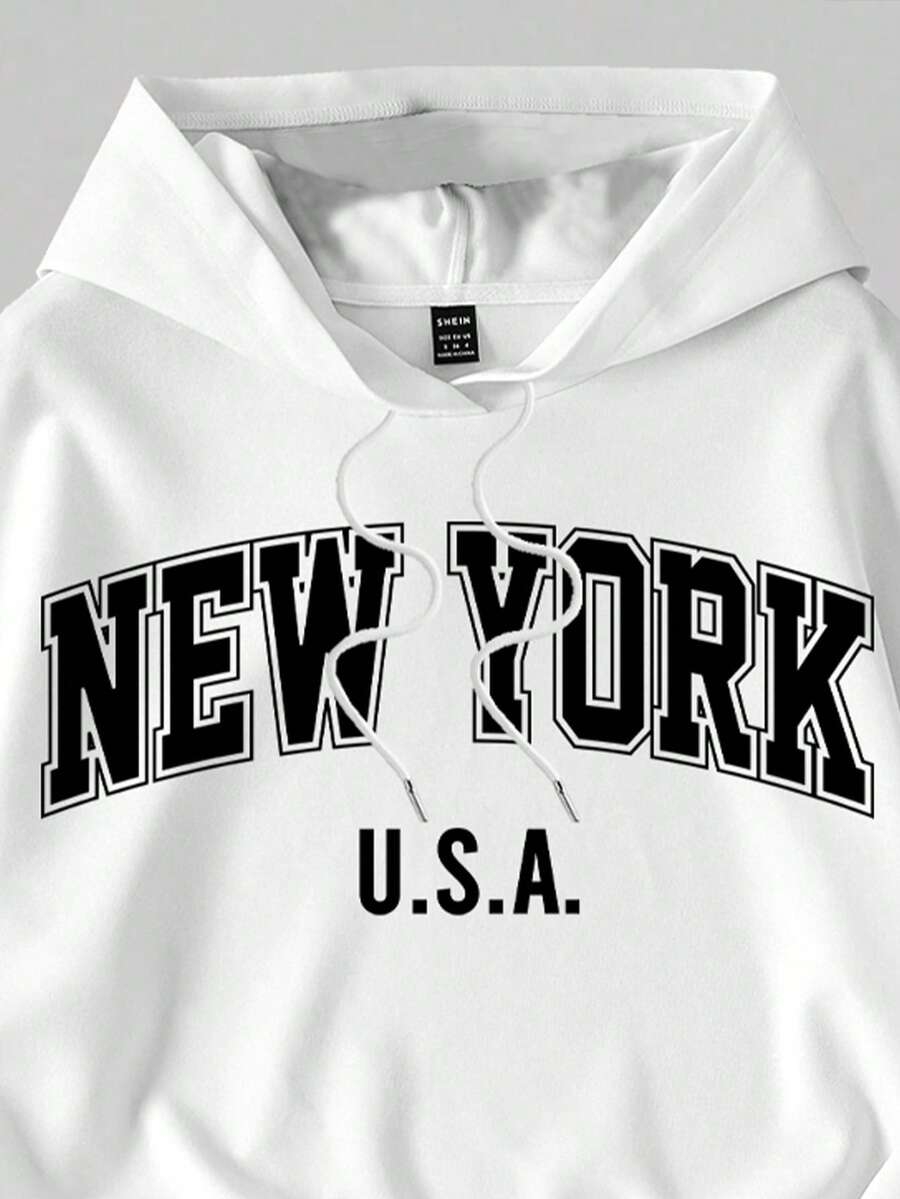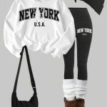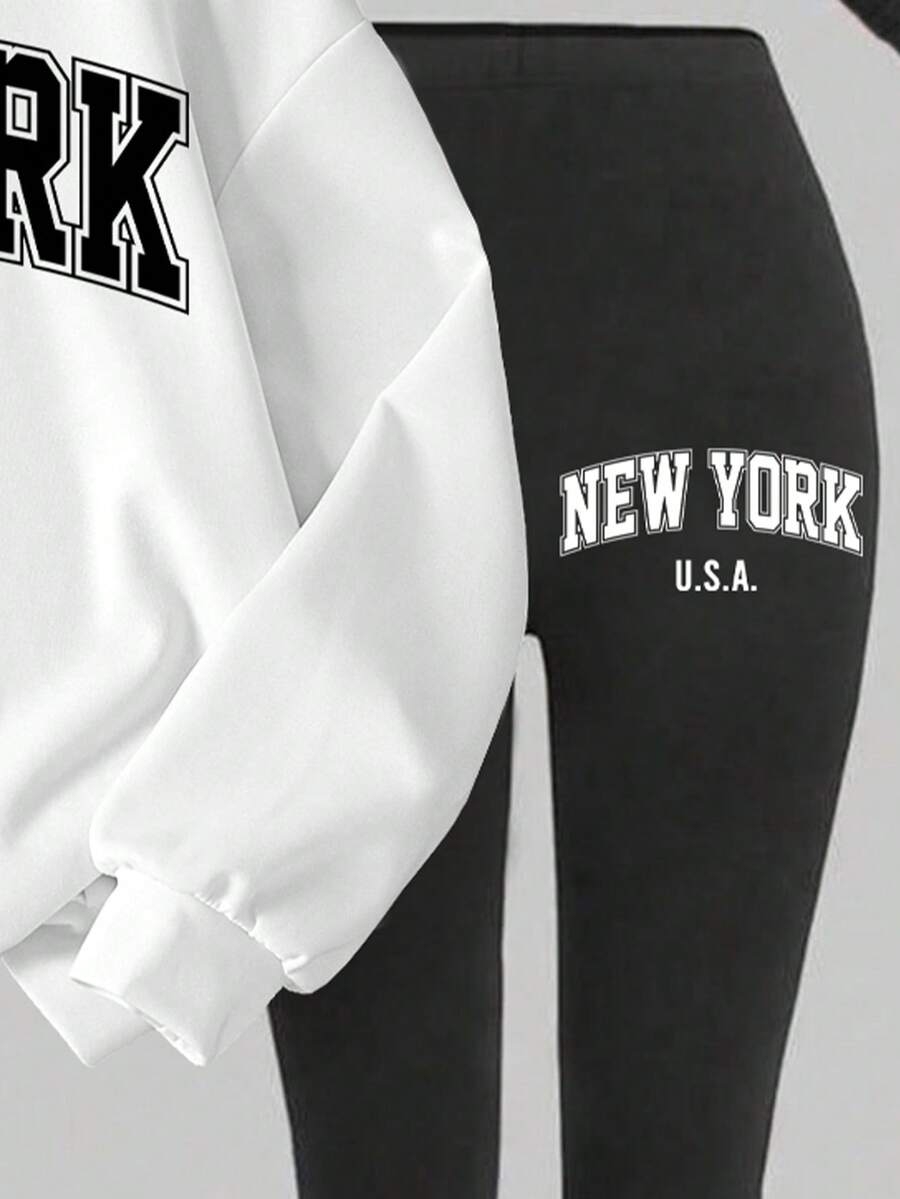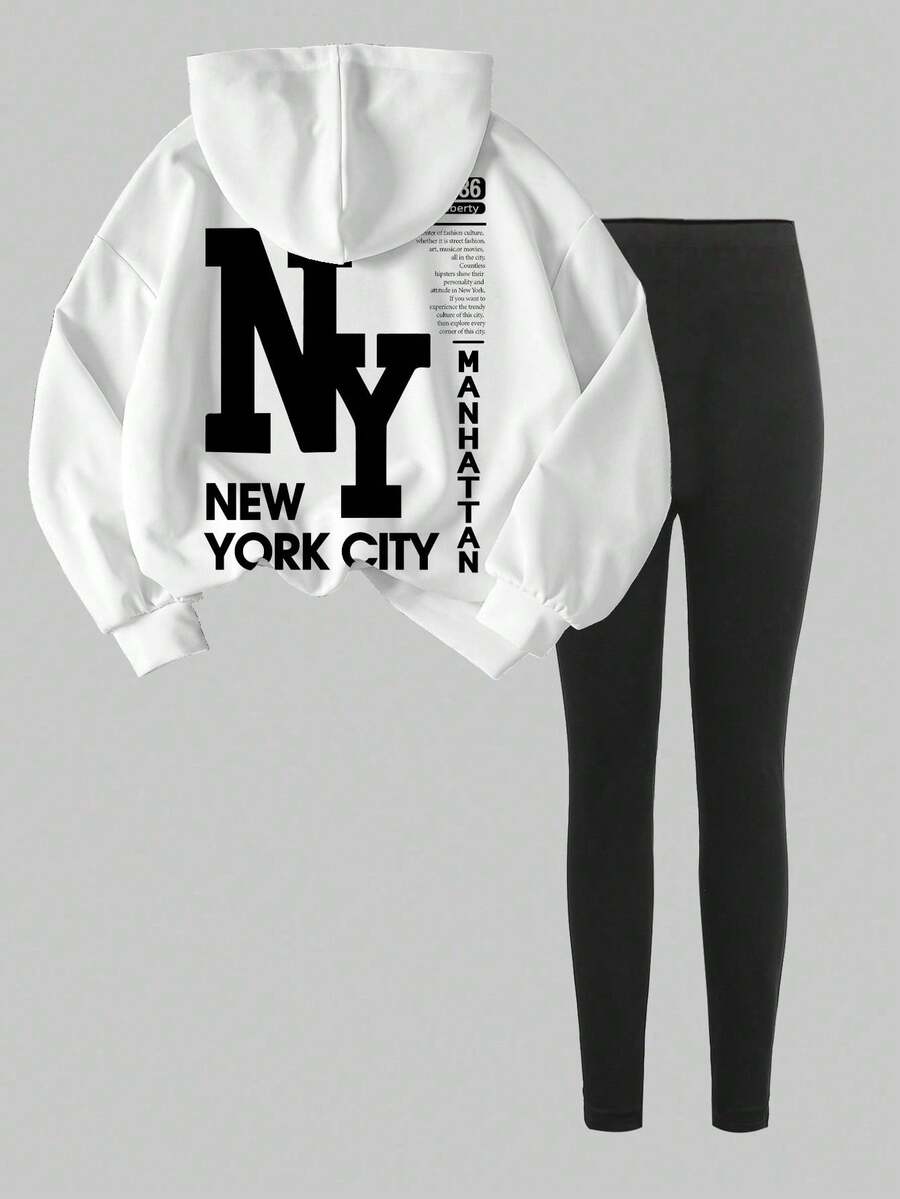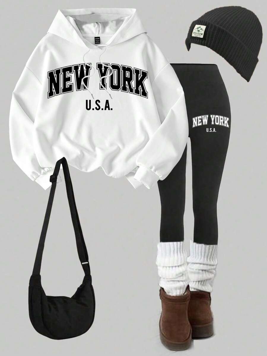 Slaydiva Fall Clothes/Winter Clothes/2pcs Set /Casual Hoodie Sweatshirt And Tight Leggings Set/Y2k Clothes/Streetwear /Back To School/Going Out Set/New York Letter Print