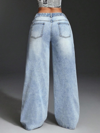 3 reviews for Slaydiva Plus Size Light-Colored Rivet Decor Casual Loose Fit Denim Wide Leg Pants/Winter