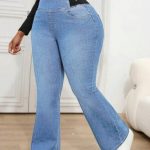 3 reviews for Slaydiva Plus Size Skinny Stretchy Flare Jeans, Blue