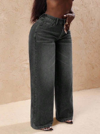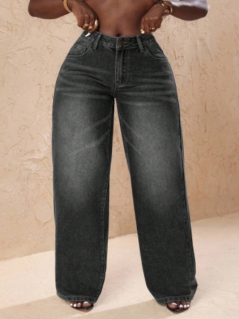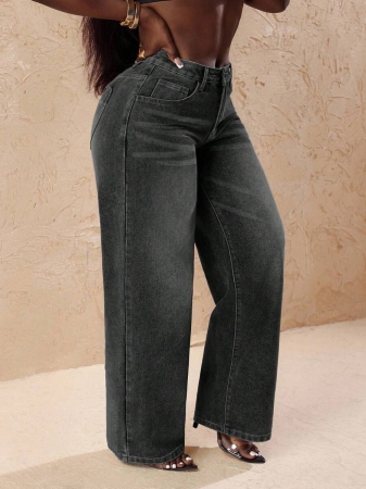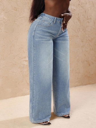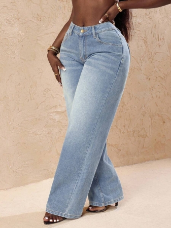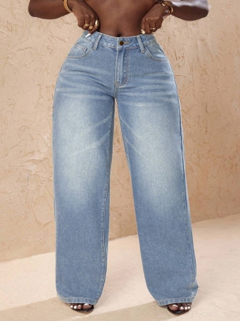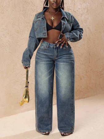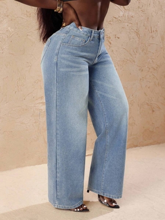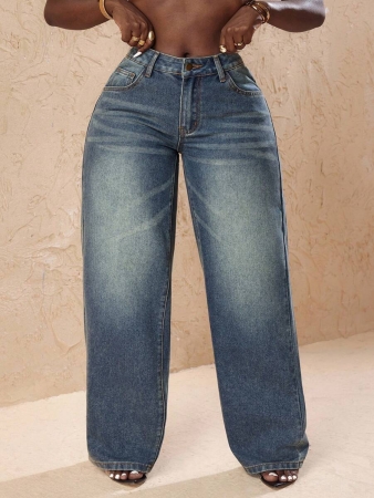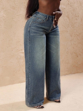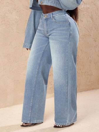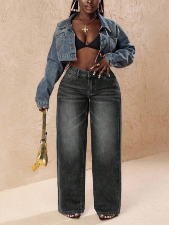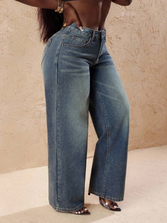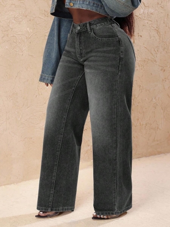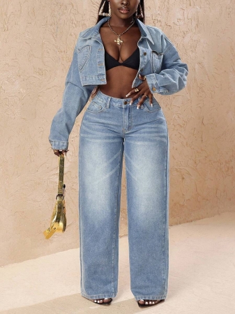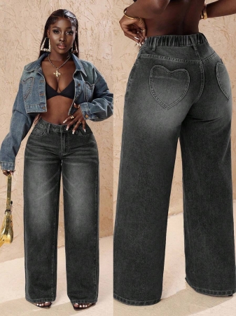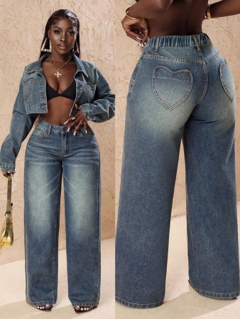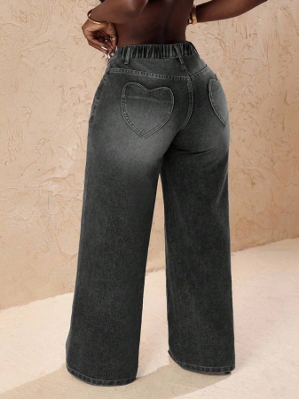 3 reviews for Slaydiva Plus Size Vintage Faded Denim Wide Leg Pants With Heart Pocket, Fashion & Versatile For Summer,Fall Clothes For Women