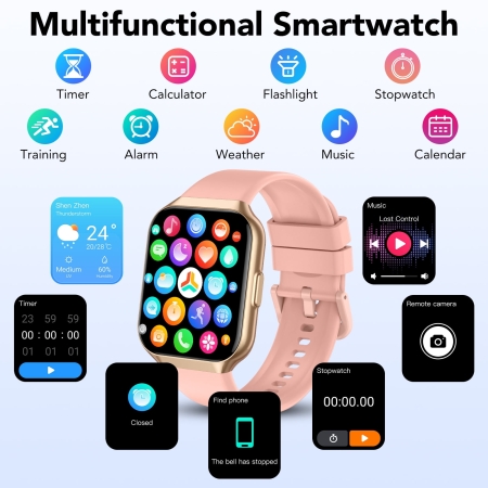 - 320*380 resolution: The screen with high color reproduction gives you the smoothest visual experience. Secondly, you can customize your watch face. It can be any photo, such as your family, pets, etc., to meet your personalized needs, follow the rhythm, and give you a different experienceAnswer and make calls anytime, anywhere, with clear speaker sound quality, you can clearly hear what the other party is saying. Supports information push across the entire network (WeChat, QQ, Instagram, YouTube, Messenger, Gmail, Snapchat, Facebook, Twitter, WhatsApp, etc.), so you don’t miss any important information and reduce anxietyIncluding running, mountain climbing, cycling, basketball, badminton, football, yoga and other sports modes. All-weather exercise tracking records your exercise process in real time, allowing you to better adjust your exercise status and become your professional sports personal trainerSupports hand washing and showering, meeting daily needs (note: do not use it in water with a temperature exceeding 100.40°F, such as showering, sauna, swimming, long-term soaking in water, etc., which will affect the waterproof life).This smartwatch is the ideal holiday gift choice! It not only boasts a stylish design and a high-definition screen but also supports personalized dial customization, allowing recipients to showcase their personality and collections at any time. What’s more, it’s practical and feature-rich, including wireless calling, message reminders, and multiple exercise modes, making users’ daily lives more convenient. Whether it’s staying connected with family and friends or tracking fitness progress, this smartwatch will become an indispensable companion in their lives. Choose smartwatches for Mother’s Day, Halloween, and Christmas.