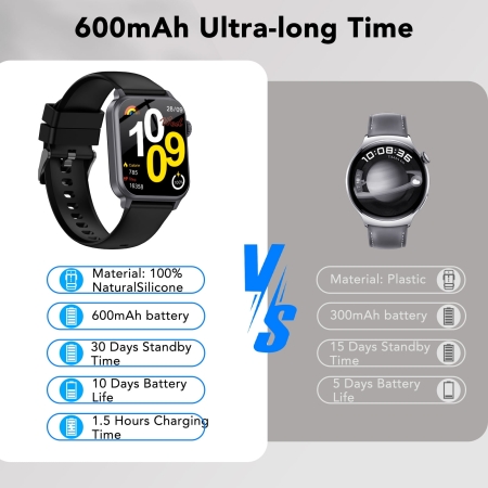 - 30 Days+ Battery Life:Smart watches for men women features a massive 800mAh battery, offering 30 days of use (30 days standby) on a single 2.5-hour charge. Perfect for outdoor adventures, business trips, or daily fitness tracking without constant charging.