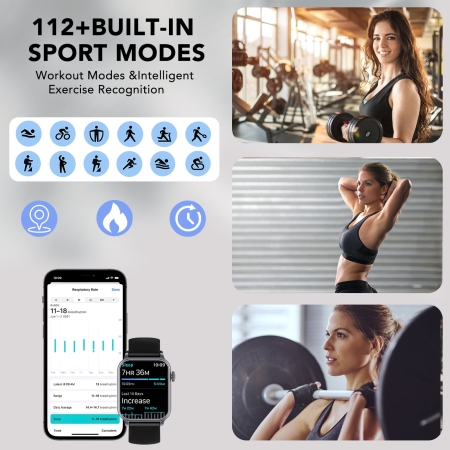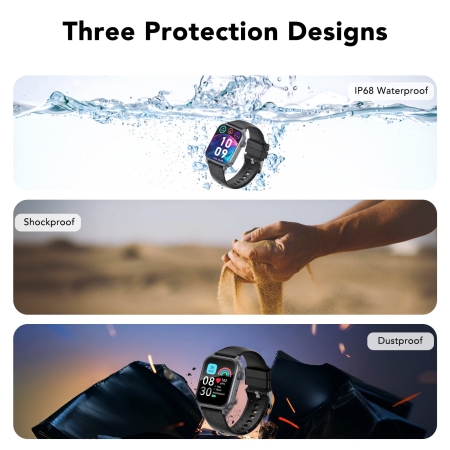 - 110+ Sport Modes and IP68 Waterproof: Fitness watch comes with 110+ sport modes to meet all your fitness needs. When you exercising, the watch precisely tracks your performance metrics. This smartwatch is rated with an IP68 waterproof standard.