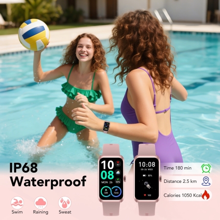 This Fitness Tracker pairs easily with the phone and comes with features like sleep monitoring, heart rate, steps, and calorie tracking. It also includes Calls, Messages, Music, Alarm, and Stopwatch. The design is super comfortable, and I’m using the pink band which fits perfectly on my wrist. The screen is clear, with plenty of watch face options, and the battery lasts a long time. I really love this! It’s perfect for women looking for a stylish and reliable smartwatch