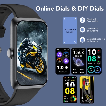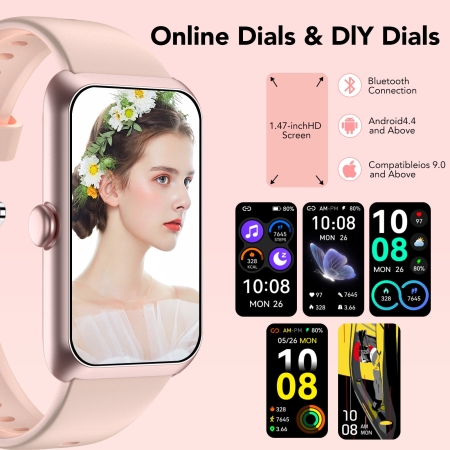 - 1.83” HD Display and DIY Dials: Smart watches for men women use high contrast and fast response TFT color screens. “Da Fit” app offers over 100+ dials to choose from. You can also choose a favourite photo for the wallpaper of your smart watches.
