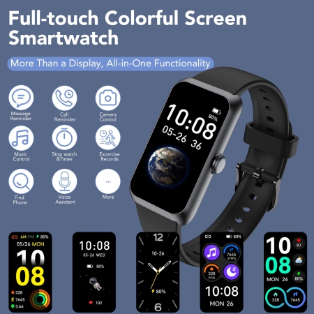 - More Useful Functions:More useful features are waiting for you to discover, such as timer, stopwatch, alarm clock, sedentary reminder, music control, weather forecast, camera control, calculator, etc.