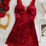 3 reviews for Solid Color Lace Splicing Velvet Sexy Nightgown, Deep V Backless Slit Night Dresses,Ladies’ Fall & Winter Comfortable Sleep Dress Sexy Lingerie Valentine’s Day Gift