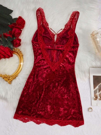 3 reviews for Solid Color Lace Splicing Velvet Sexy Nightgown, Deep V Backless Slit Night Dresses,Ladies’ Fall & Winter Comfortable Sleep Dress Sexy Lingerie