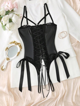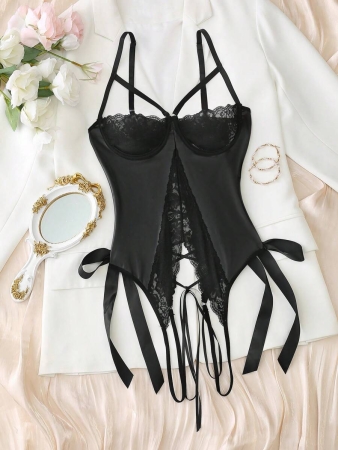 Details | Bow, Contrast Lace, Cut Out, Lace Up |