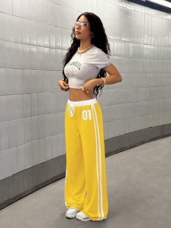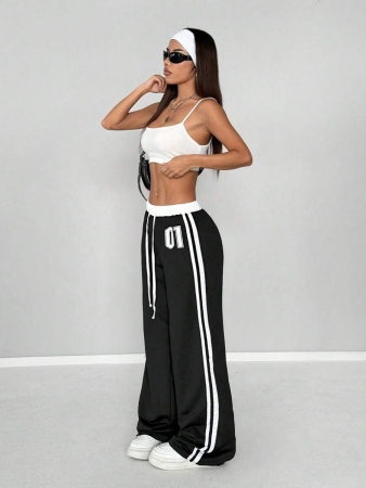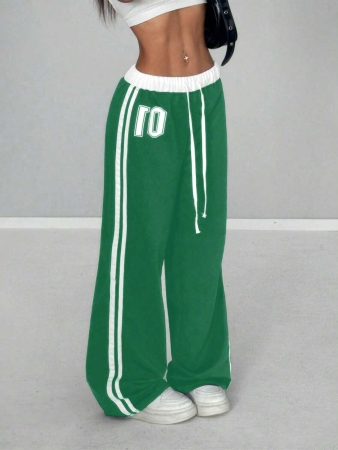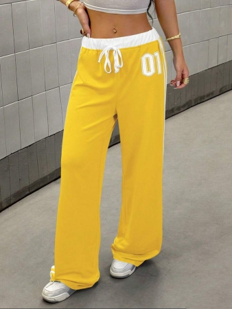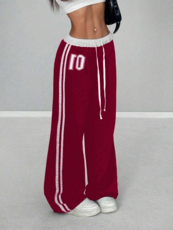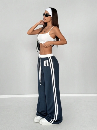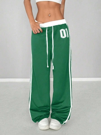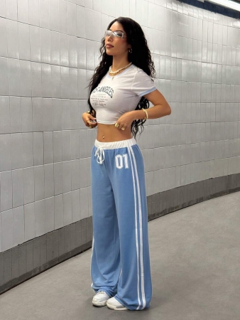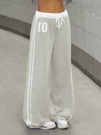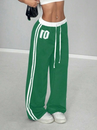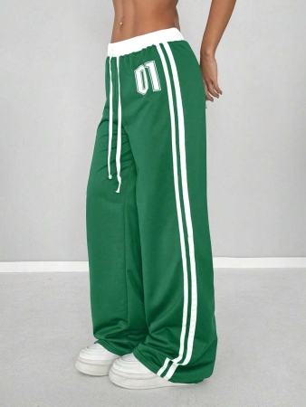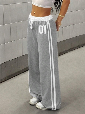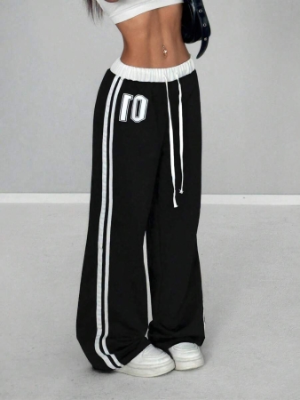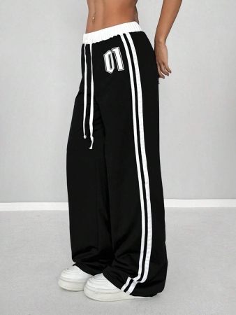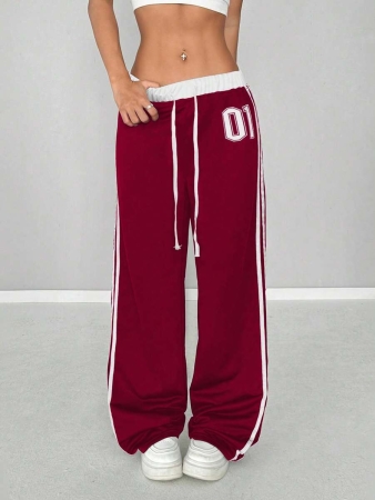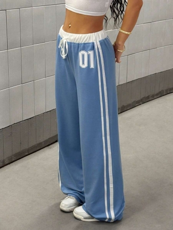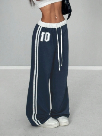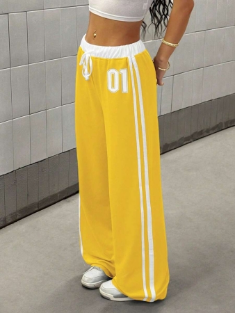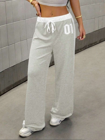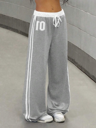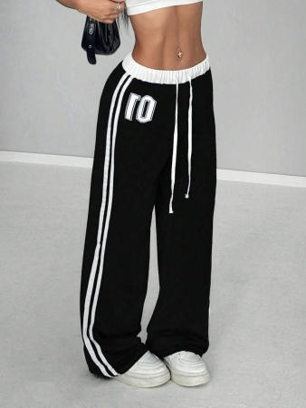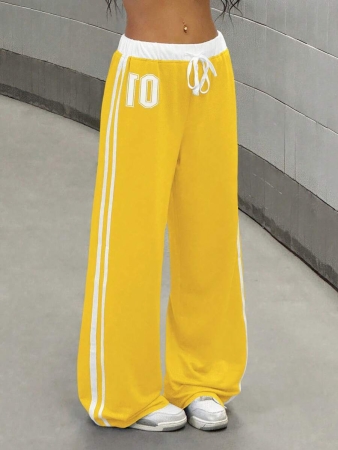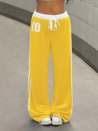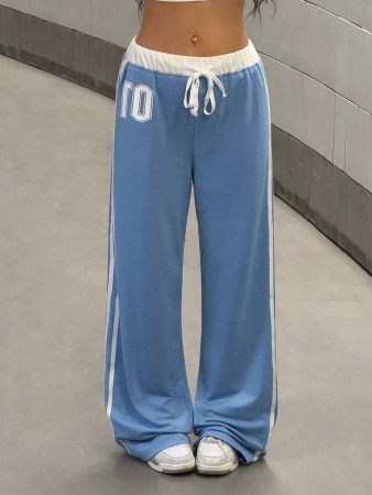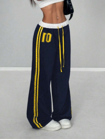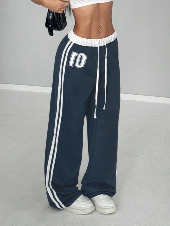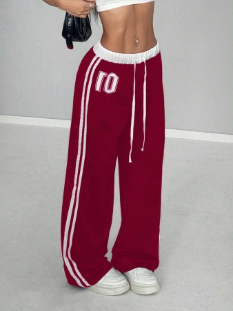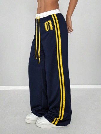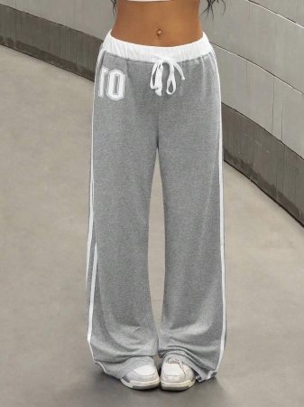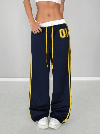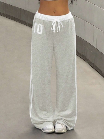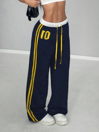 StreetHx Women’s Numeric Print Patchwork Waist Casual Sports Street Vintage Style Long Sweatpants, Spring/Summer Graduation,Back To School Outfits,Graduation,Teacher Outfits For Women,Back To School Fall Cloth For Women