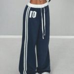 StreetHx Women’s Spring/Summer Numeric Print Waistband Patchwork Casual Sports Street Retro Style Loose Long Sweatpants Graduation,Back To School Outfits,Graduation,Teacher Outfits For Women,Back To School Fall Cloth For Women