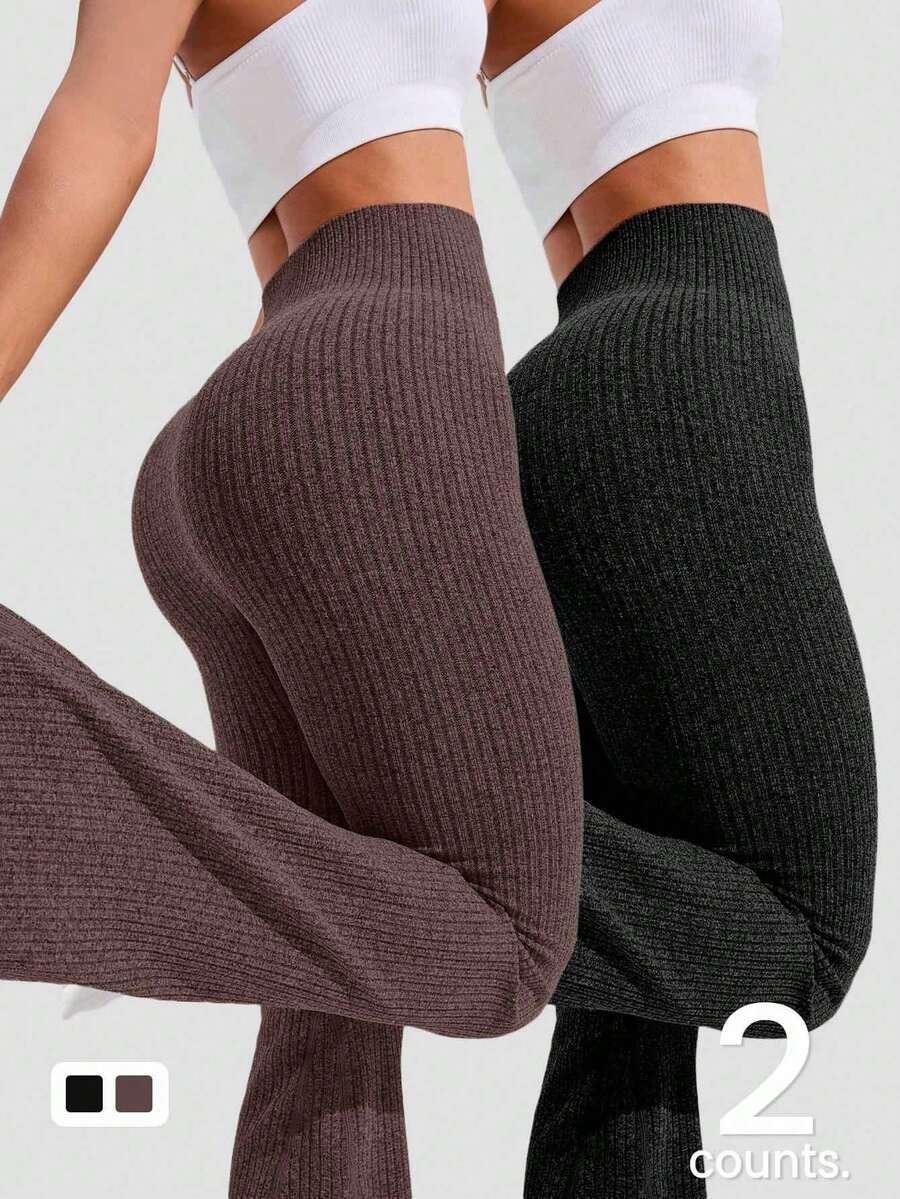 Studio SHEIN Sport 2pcs Seamless Sports Yoga Leggings Workout Leggings Ribbed Leggings Yoga Pants Ribbed Knit Leggings Wide Leg Leggings Knitted Leggings Flare Leggings Ribbed Wide Leg Leggings Flare Ribbed Leggings Leg Warmers Women Slouch Socks Women Thigh High Socks