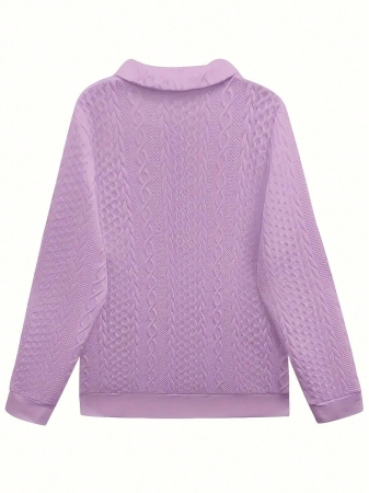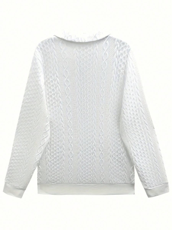 Textured Half-Zip Pullover, Casual Long-Sleeve Sweatshirt, Suitable For Autumn And Spring, Women’s Clothing, Chic Women’s Half-Zip Pullover Sports Sweater – Elegant Solid Color, Long Sleeves, Textured Cable Knit, Polyester Blend, Machine Washable