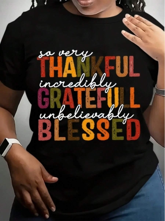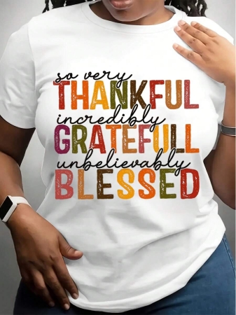 Thankful Grateful Women’s Graphic T-Shirt Inspirational Quotes Soft Cotton Tee For Everyday Wear Casual Style Plus Size Available