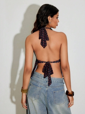 TRNVIE Women’s Elegant Polka Dot V-Neck Halter Neck Camisole, Spring/Summer