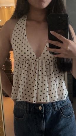 I’M IN LOVE WITH THIS TOP! It’s so cute and probably the cutest too I own. Fits exactly right and has an open back, it’s comfortable and looks exactly like the photos. 100% recommend (pls like, I’m broke af)ðŸ˜